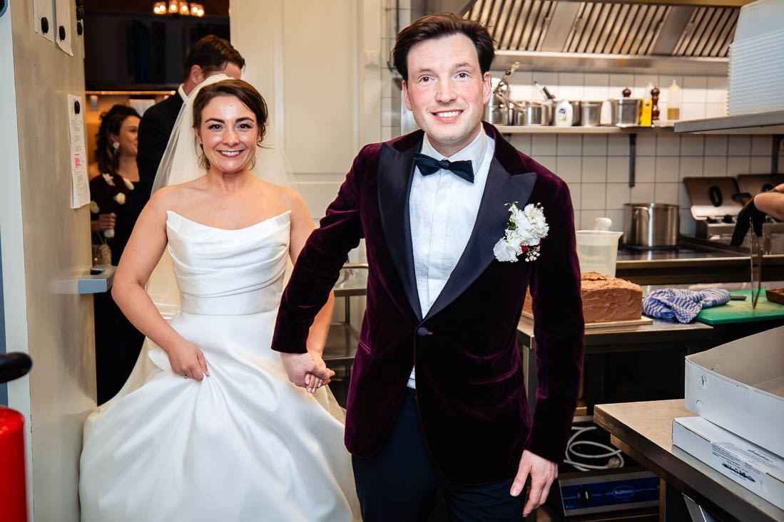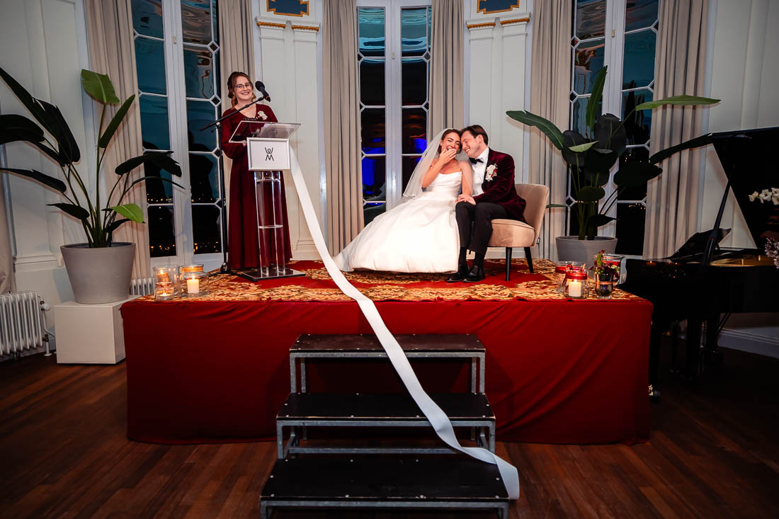 Toen het dessert werd geserveerd, glipten A & M stiekem via de keuken weg om zich klaar te maken voor de ceremonie. In een romantische setting werden de geloften uitgesproken en ringen uitgewisseld. Een intiem moment vol liefde, gevolgd door… feest!
