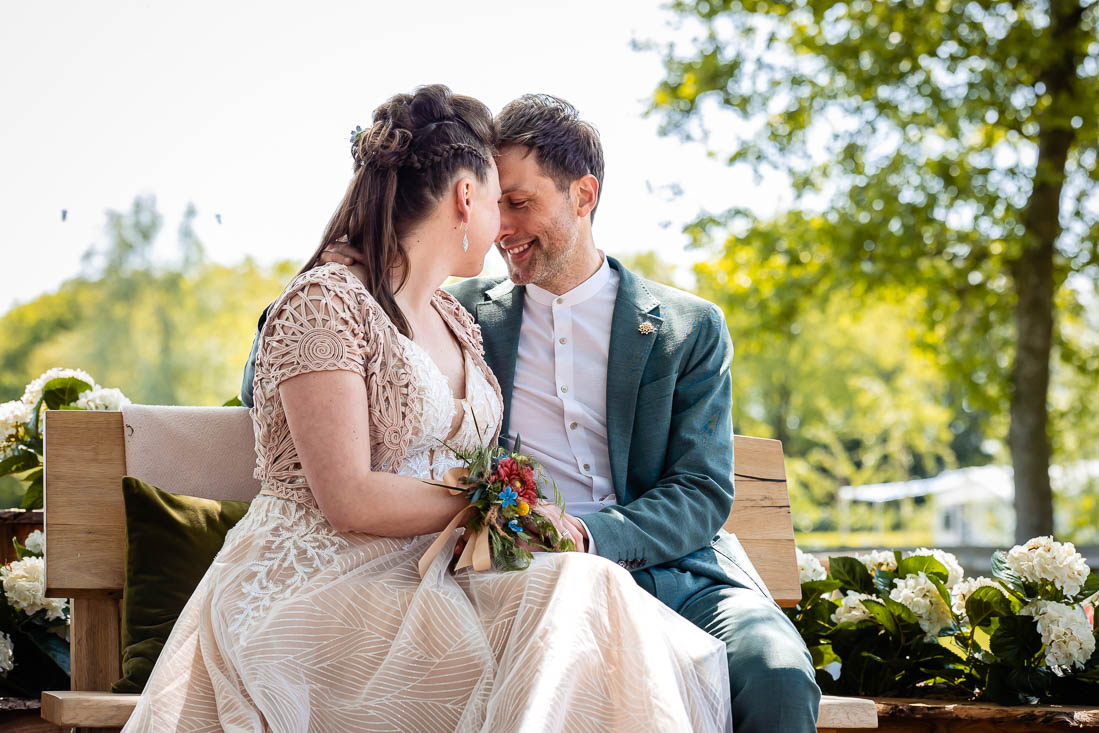 Liefde is in de lucht! Want wat doe je als je als bruidspaar helemaal gek bent van de natuur en met hele gezin regelmatig op fiets en wandelvakanties gaat. Dan vier je de bruiloft in de buitenlucht bij Paviljoen Het Buitenhuis in Ewijk. Deze locatie midden in de natuur met groene velden, veel water, majestueuze bomen en palen diende als het perfecte decor voor de bruiloft. Daar werd een prachtig nieuw hoofdstuk toegevoegd aan het liefdesverhaal van Neeltje en Nan.