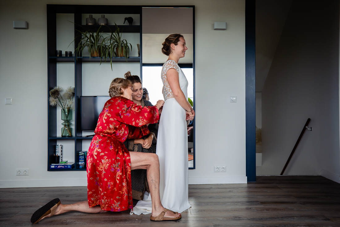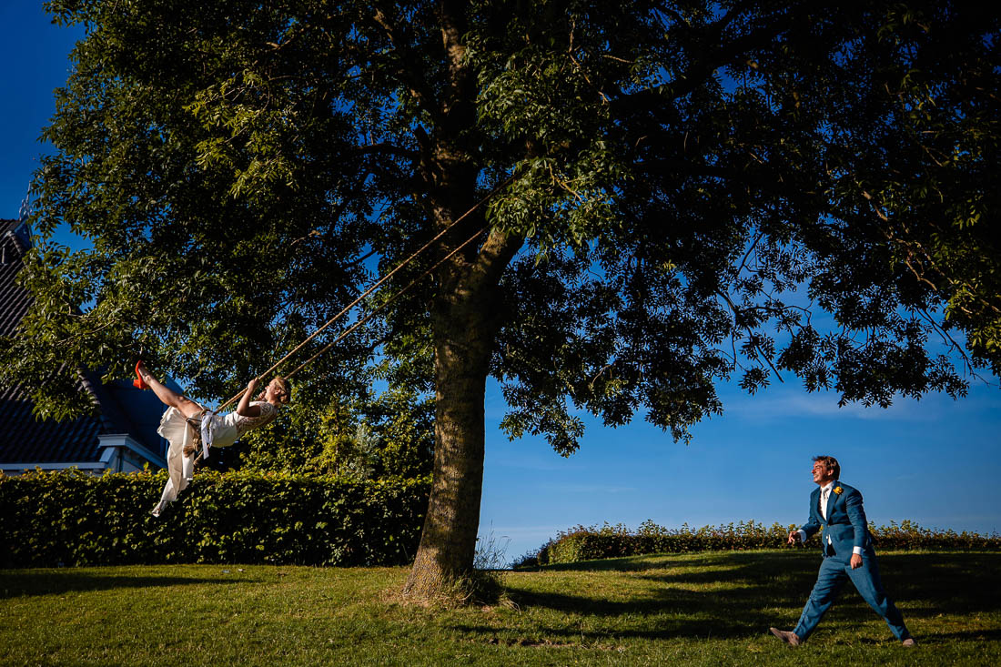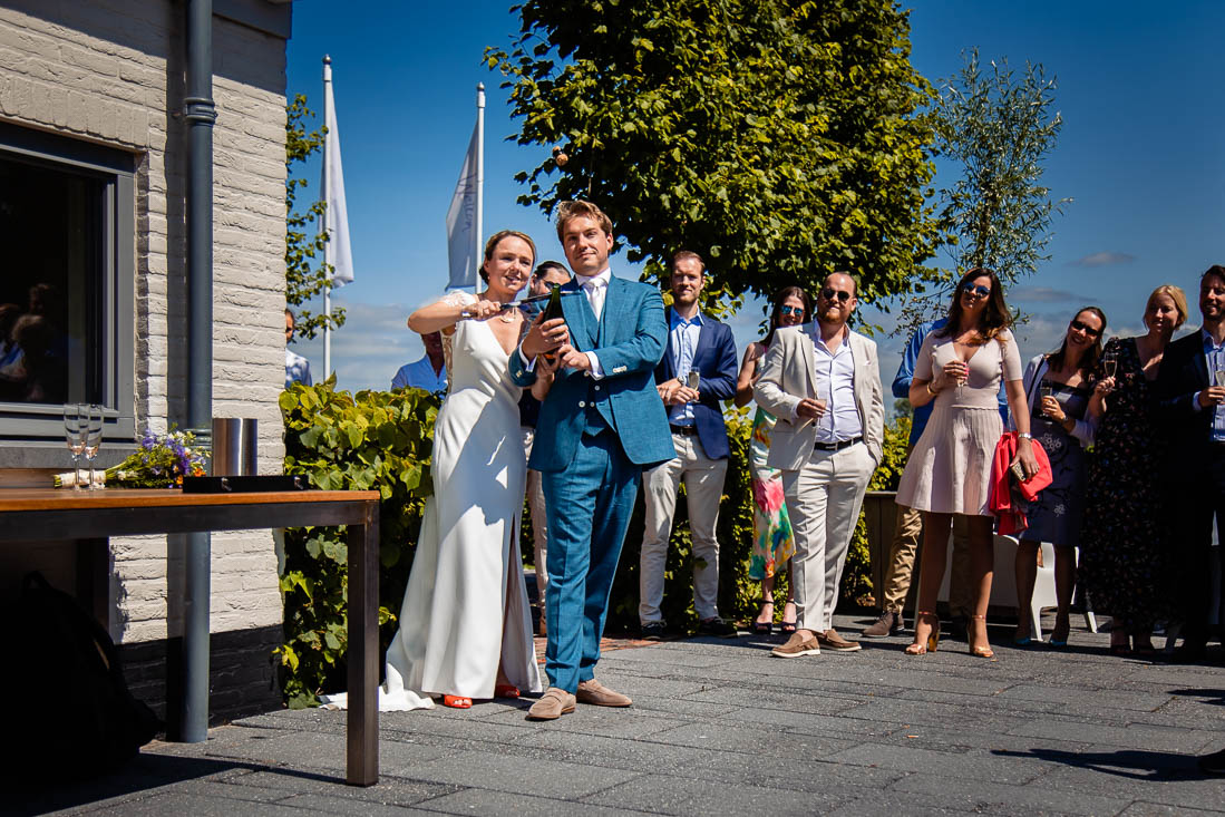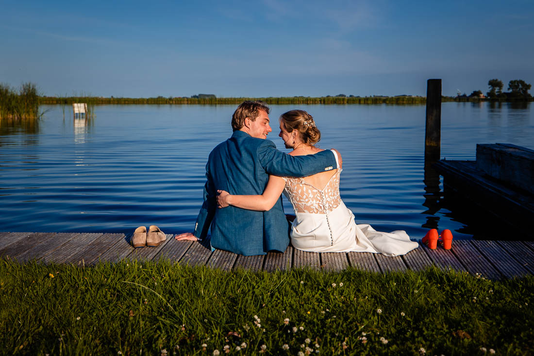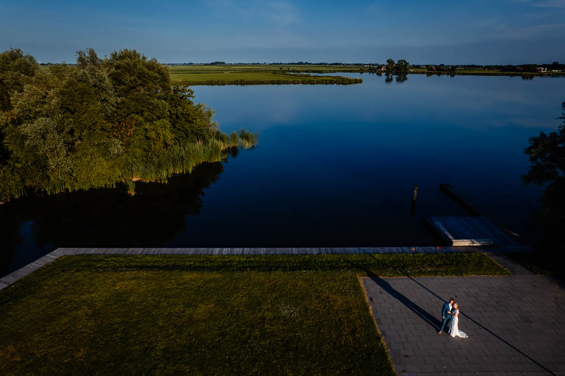 Freek is afstand voor jou een bezwaar? Dit is een van de meest gestelde vragen die ik krijg. Mijn antwoord; het maakt mij niet uit waar de bruiloft is, als het maar gezellig is. Ik stap graag in de auto, bus, trein of vliegtuig en we komen naar jullie toe. En zo stond ik op een vroege zaterdagochtend in juli samen met mijn second shooter Wietske in de gemeente Súdwest Fryslân. En niet op zomaar een locatie, nee ook nog de mooiste trouwlocatie van Friesland waar je kan trouwen aan het water. Wie droomt daar nu niet van? Het zag er allemaal heel indrukwekkend uit 😉 Maar dit was slechts het begin van een prachtige dag.